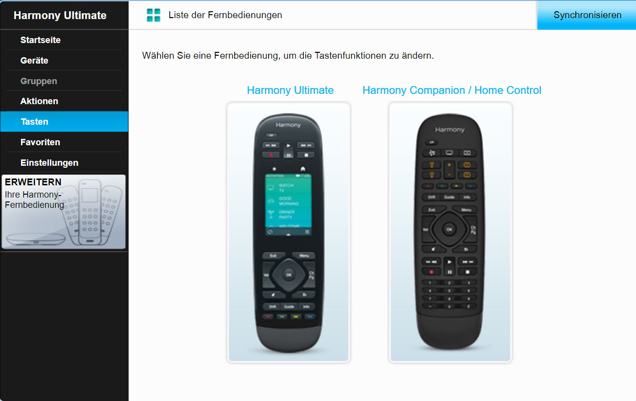 Hier ist die Ultimate die Harmony mit Hub und die wurde über "Erweiterungen" mit der Companion (ohne Hub) erweitert.