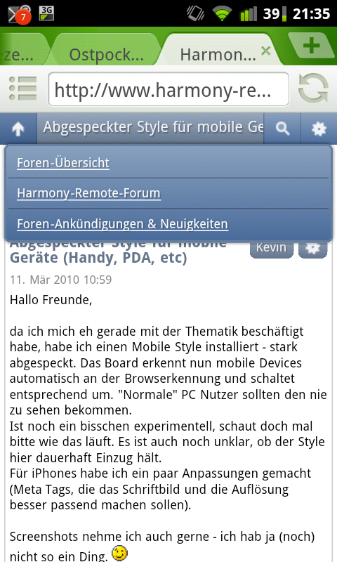 also dann will ich auch mal meinen Senf dazu geben. Also auf dem iPad habe ich den Mobile-Style gleich wieder abgeschaltet, hier bevorzuge ich eindeutig die volle Version. Auf meinem Android-Phone gewöhne ich mich langsam daran und entdecke die Vorteile. Nur das Rot für neue Beiträge sticht mir irgendwie in die Augen. Vielleicht kann man da noch was drehen?