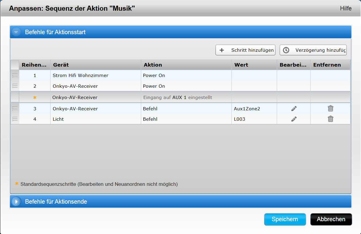 pointe hat geschrieben: Auch mit "Schritt hinzufügen" klappt es nicht Wenn ich keinen Befehl hinterlege speichert die "Aktion" das "Licht" nicht.
