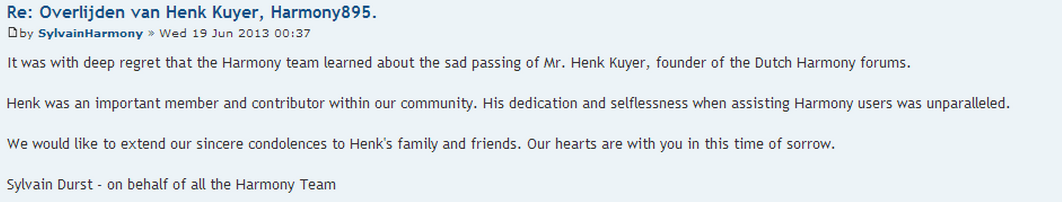 Für die, die Henk nicht kennen, er war Mitbegründer und einer der treibenden Kräfte im holländischen Harmony-Forum und auch hier bei uns aktiv.