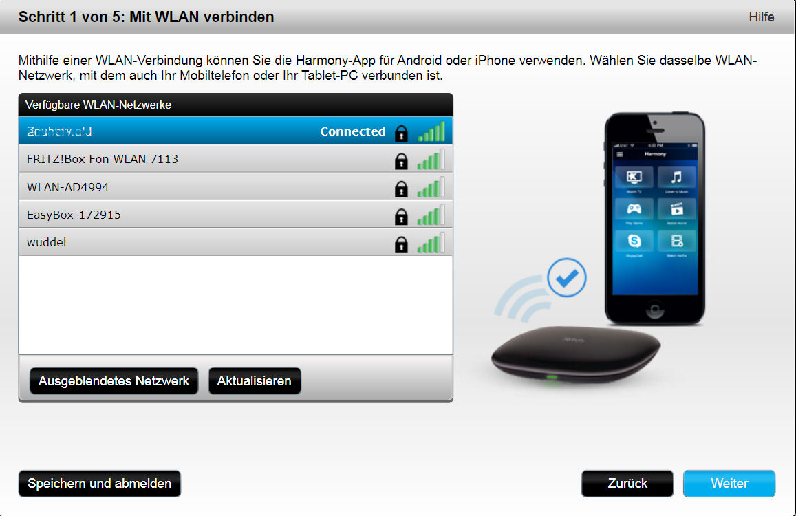 :!: Eine "Vorabeinrichtung" vor dem Kauf einer Harmony ist nicht möglich, wie wir gleich sehen werden.