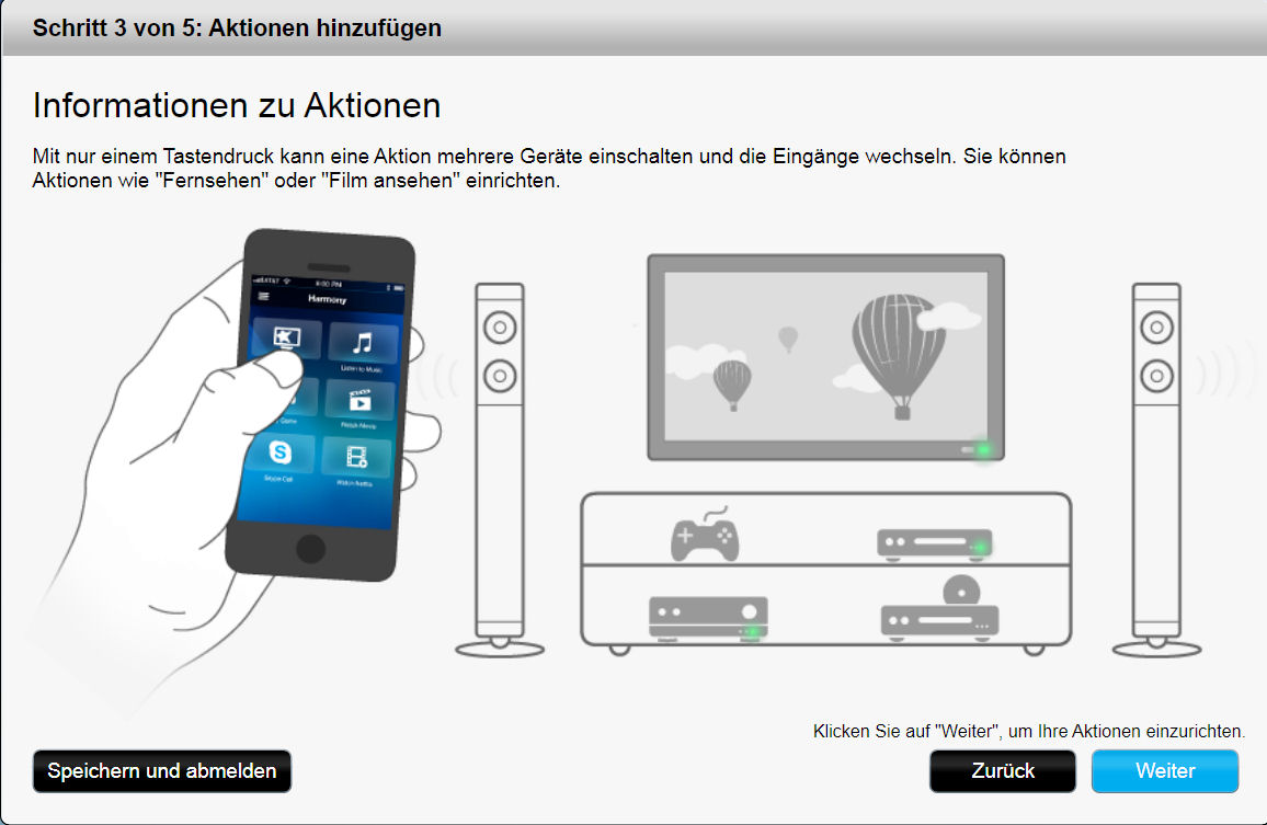 Im nächsten Schritt gibt's dann eine Info zu Aktionen:
