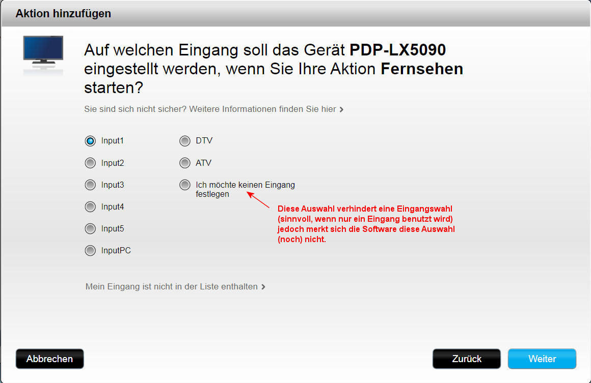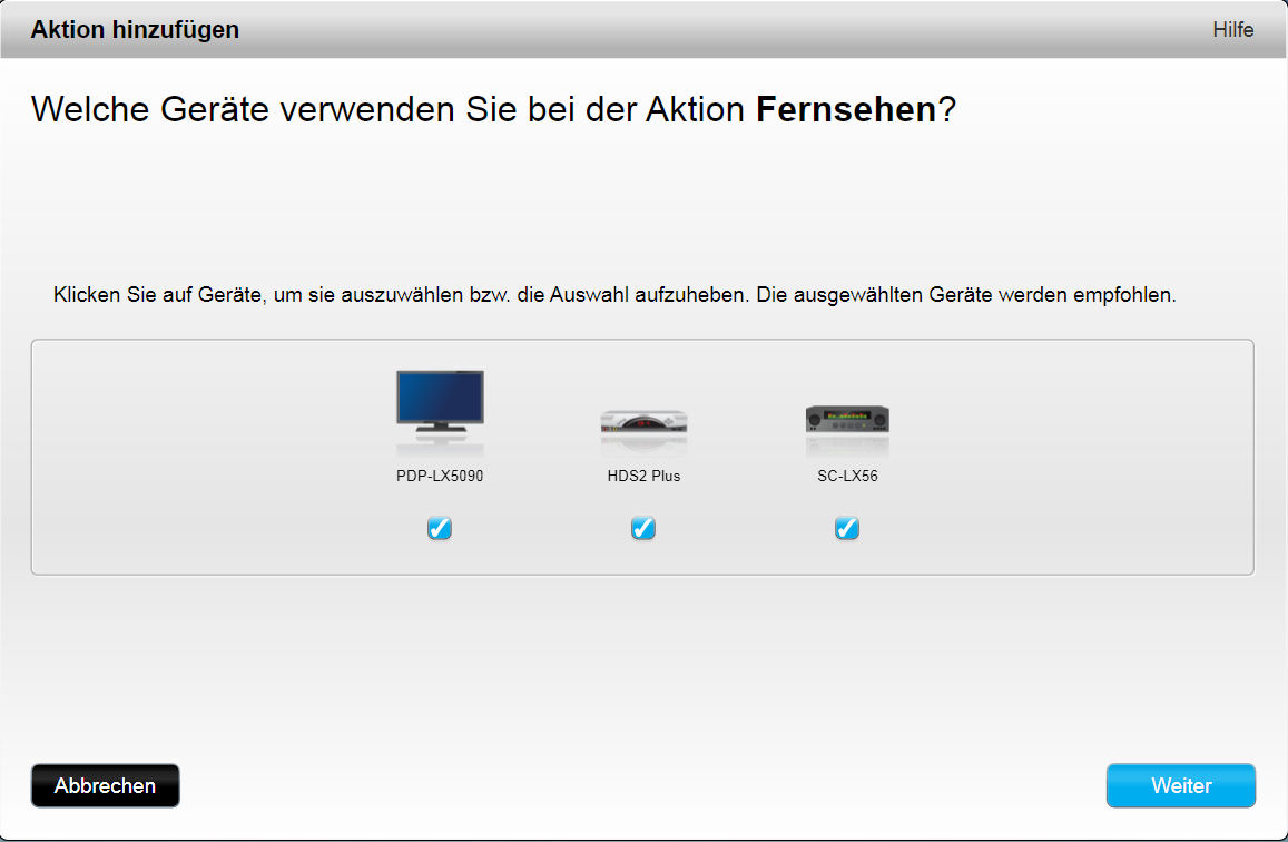 Bei der Ersteinrichtung wird immer die Aktion "Fernsehen" zwangsweise angelegt.