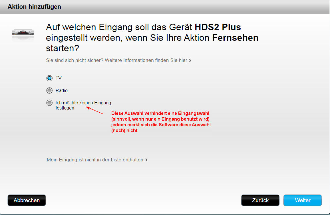 Im nächsten Schritt will die Software wissen, welches Gerät den Kanal-Wechsel vornimmt ...