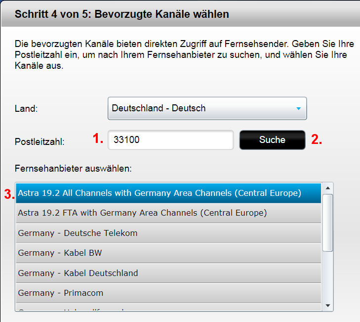 Keine Angst, Logitech "späht" damit nichts aus, sie legen anhand der Postleitzahl nur fest, welcher Fernsehanbieter für uns in Frage kommt: