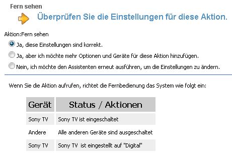 Wähle ich die Aktion "DVD sehen", soll der Fernseher einfach nur eingeschaltet werden (der dann aktive Eingang ist mir dabei egal), danach soll der Befehl "Input HDMI1" gesendet werden.