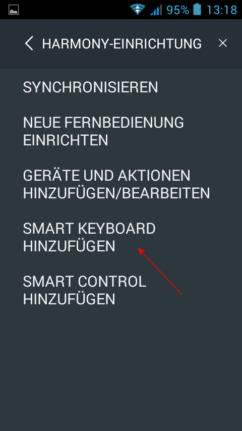 - Die Erweiterung um das SmartKeyboard ist nur über die App möglich, nicht aus dem myharmony-Konto heraus.