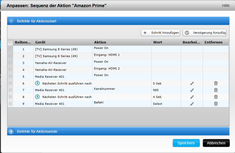 zum direkt Start neue Aktion "Amazon Prime" als "Ergänzung" zu Fernsehen anlegen