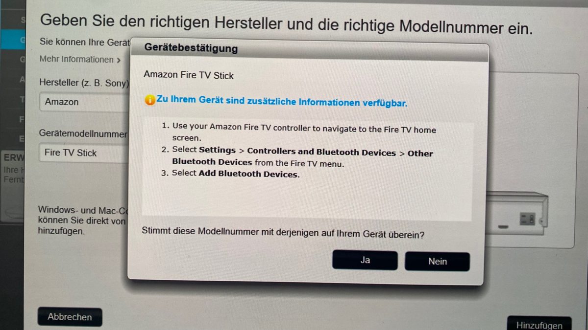 Wie finde ich den Fire-Stick in MyHarmony bzw. binde diesen ein? => neues Gerät ... und dann ....?