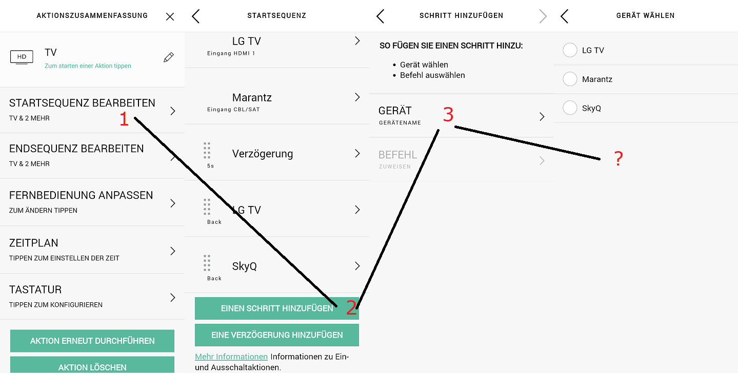 Bild Harmony FAQ (MyHarmony) | 2.06 Anleitung: Gerät in Aktionen hinzufügen