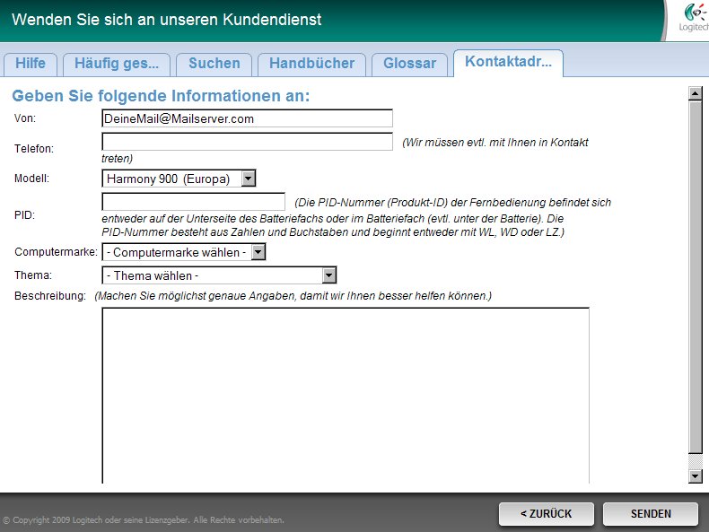 Danach läuft die Behebung von Problemen ausschließlich über Mail. Achtet hier darauf, dass ihr nach dem Abschicken eurer Mail eine "Bestätigung" bekommt, denn nur dann ist euer Problem bei Logitech eingegangen. Kommt die nicht, schickt die Mail nochmal raus.