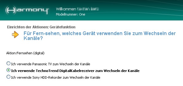 Die erste Frage der Software sollte nun sein, welches Gerät Du zum wechseln der Kanäle wählst. Hier sollte der Receiver ausgewählt sein.