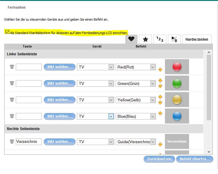 bei der One geht das in der Software, dort wo du deine Favoriten einträgst. Dort muß irgendwo noch ein unglücklich formulierter Satz über die Anzeige der Favoriten stehen. Das Feld davor anklicken, synchronisieren und voila. Genauer kann ich es dir leider nicht erklären, die One ist eine der wenigen Harmonys die ich nie besessen habe.