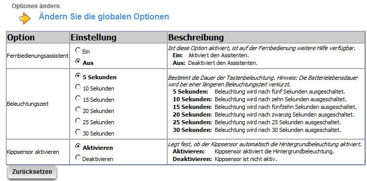 Dieses Gerät umbenennen: (Selbsterklärend) Infrarotbefehle bestätigen: Hier werden die von der Original-Fernbedienung gesendeten Infrarot-Befehle gegen die der Datenbank geprüft.