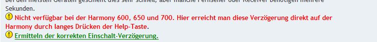:!: Nicht verfügbar bei der Harmony 600, 650 und 700. Hier erreicht man diese Verzögerung direkt auf der Harmony durch langes Drücken der Help-Taste.